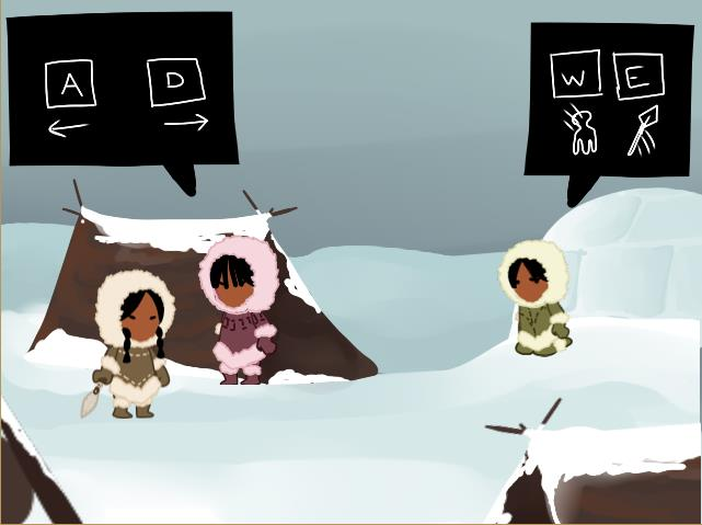 During the 2015-2016 academic year, IDG student Suus de Kock developed a video game titled "Sedna" for the purposes of the Prototyping for Game Designers course. Sedna is a short 2D side-scroller that puts the player in the shoes of an Inuit shaman who has to travel to the house of the sea goddess in order to save her village from starvation. In the game the player takes the role of a shaman who travels down to the abode of Sedna, an Inuit sea goddess, in order to placate her so that she might let her sea creatures be caught by hunters. The gameplay is kept simple to facilitate the telling of the story, with the player moving through several environments with obstacles to get to Sedna’s house. The game has two different endings, a success state and a fail state, depending on how the player deals with the obstacles they’re presented with.