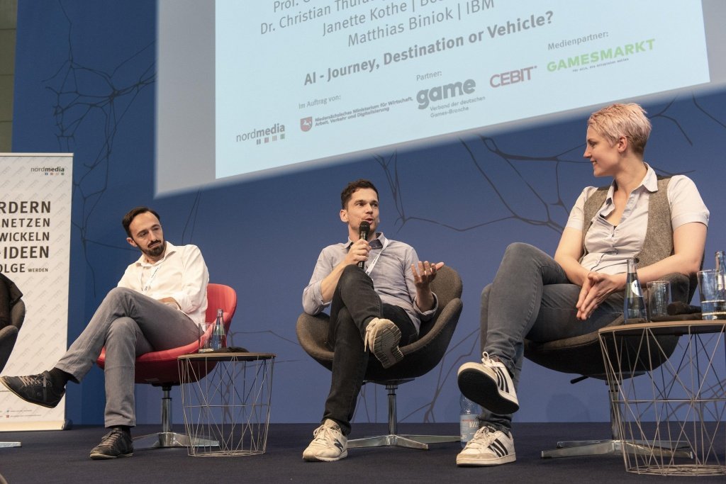 Prof. Yannakakis also participated on a panel in AI together with Ed Doran (Cortana), Dr. Christian Thurau (Twenty Billion Neurons GmbH), and Janette Kothe (Bosch Iot)