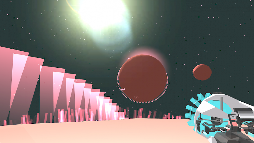 [A screenshot of Mirrormoon EP (Santa Ragione, 2013) exemplifying the minimal, procedurally-generated features of their explorable content (used with permission)]