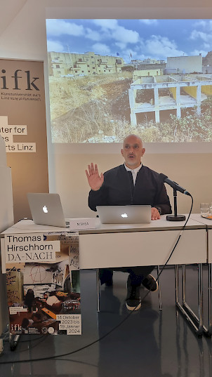 Titled Alles bröckelt which literally translates to 'everything is crumbling', the event took place at the International Research Centre for Cultural Studies of the University of Art and Design Linz in Vienna. The academics utilized the space to discuss current cultural, political, and social issues, including postcolonialism, social decay in Europe, community and memory, and ongoing ethnic cleansing in various parts of the world.