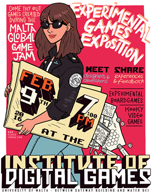 On Tuesday 9th of February, the Institute is holding the Experimental Games Exposition, to celebrate the results of the 2016 Malta Global Game Jam. The event starts at 7:00 pm and everyone is welcome to attend.