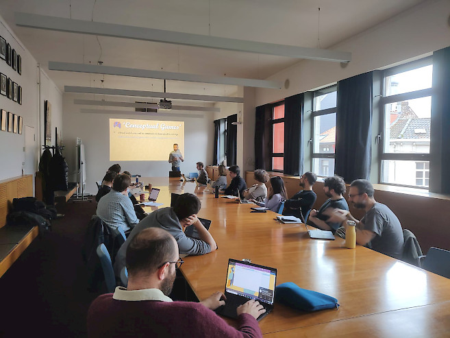 Recently, Prof. Stefano Gualeni was invited to Ghent to deliver a talk titled On Conceptual Games, hosted by Prof. Marco Caracciolo. The talk examined how video games can serve as a medium for theoretical knowledge in game studies, making them important in intellectual exploration. By integrating elements of philosophy, game theory, and interactivity, these games challenge conventional notions of how knowledge can be structured and conveyed through digital media.