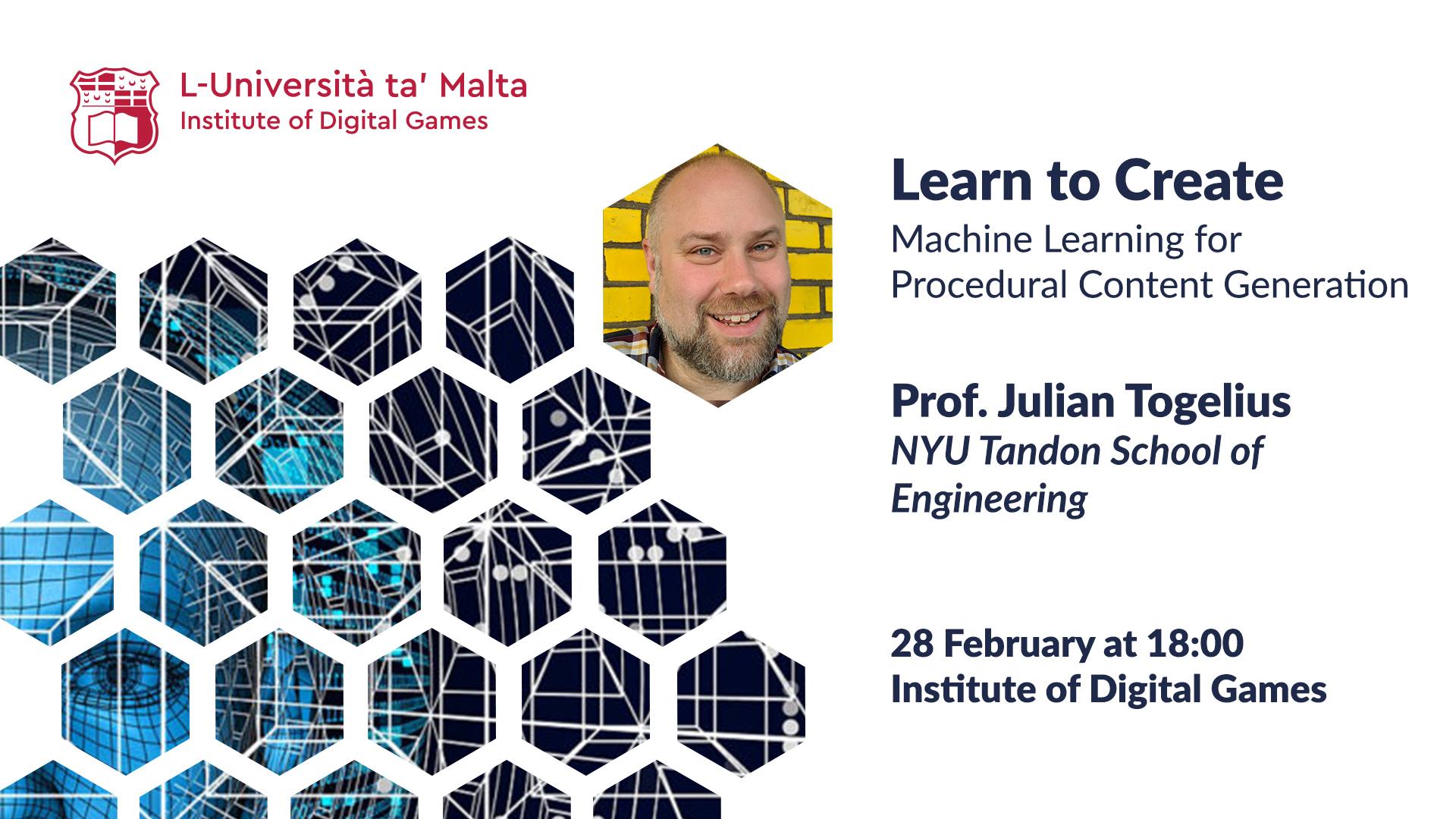 The Institute of Digital Games is thrilled to have Prof. Julian Togelius from the New York University Tandon School of Engineering presenting speaking as part of our Game Seminar Series. He will be presenting his research and work in relation to machine learning and procedural content generation on the 28th February at 18:00 at the Institute of Digital Games. He will present after Prof. Rafael Bidarra who will be covering Procedural Narrative Worlds in Games.