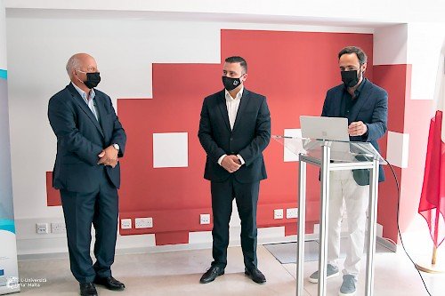 Rector of University of Malta Prof. Alfred Vella, Parliamentary Secretary Hon. Clayton Bartolo, and Director of the Institute of Digital Games Prof. Yannakakis